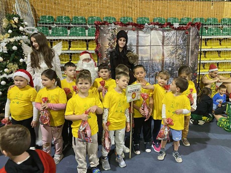 Basketbalisti a mažoretky s Mikulášom v športovej hale...
