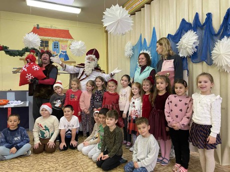 Basketbalisti a mažoretky s Mikulášom v športovej hale...